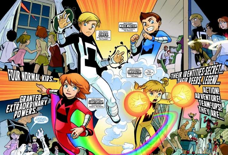 Nos quadrinhos o Quarteto Futuro mostra os quatro membros da família Power, que acabam adquirindo poderes quando entram em contato com um alienígena, entre os membros do grupo estão Franklin Richards, filho do Sr. Fantástico e da Mulher Invisível.
